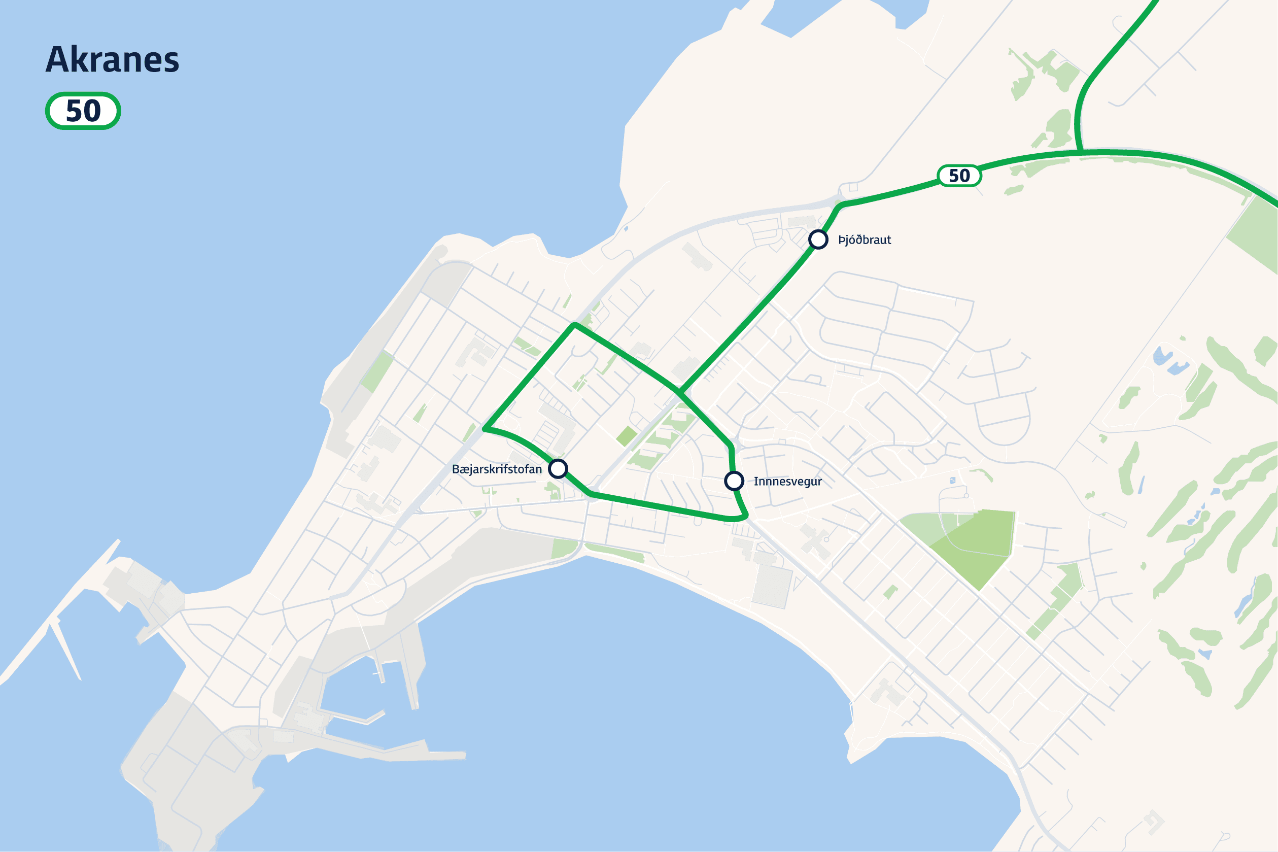 - Breytt akstursleið innan Akraness – Stoppað á Þjóðbraut, Bæjarskrifstofunni og Innnesvegi