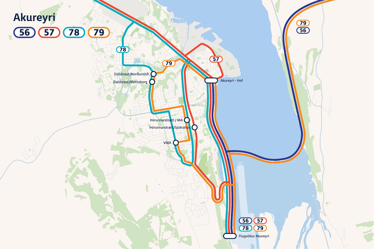 - Breytt akstursleið innan Akureyrar í , stoppar áfram við HA, VMA og MA en stoppistöðin Kaupvangsstræti dettur út