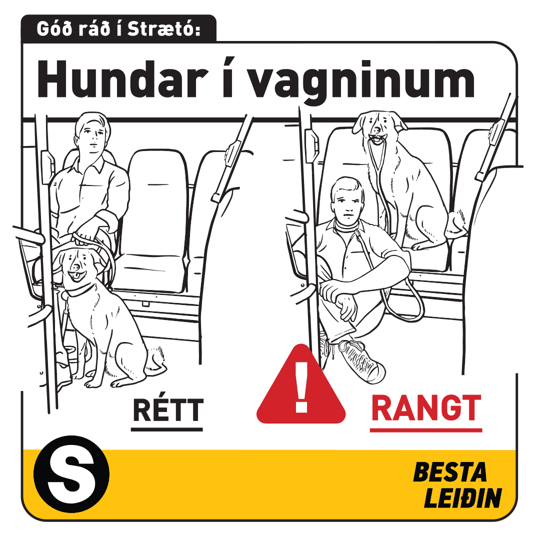 Gæludýr eru leyfð í Strætó utan annatíma. Heimilt er að ferðast með hund í hálsól og stuttum taumi í aftari hluta vagnsins. Hundar eiga að sitja á gólfinu hjá eiganda sínum.
