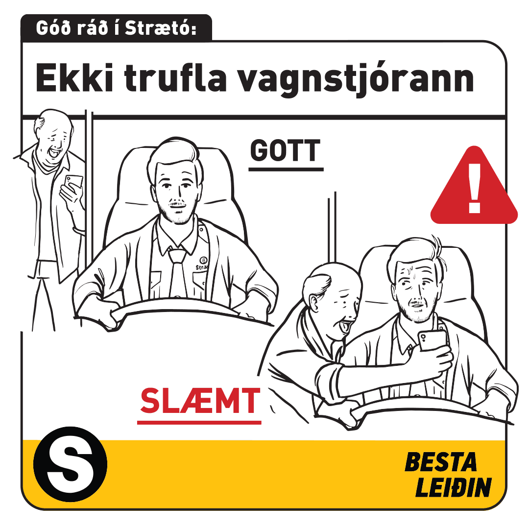 Viðræðum við vagnstjóra í akstri skal halda í lágmarki. Þumalputtareglan er að trufla vagnstjórann sem minnst á meðan á akstri stendur.