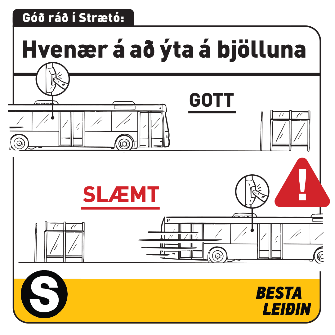 Við mælum með því að ýta tímanlega á bjölluna þegar þú ætlar út á næstu stöð.