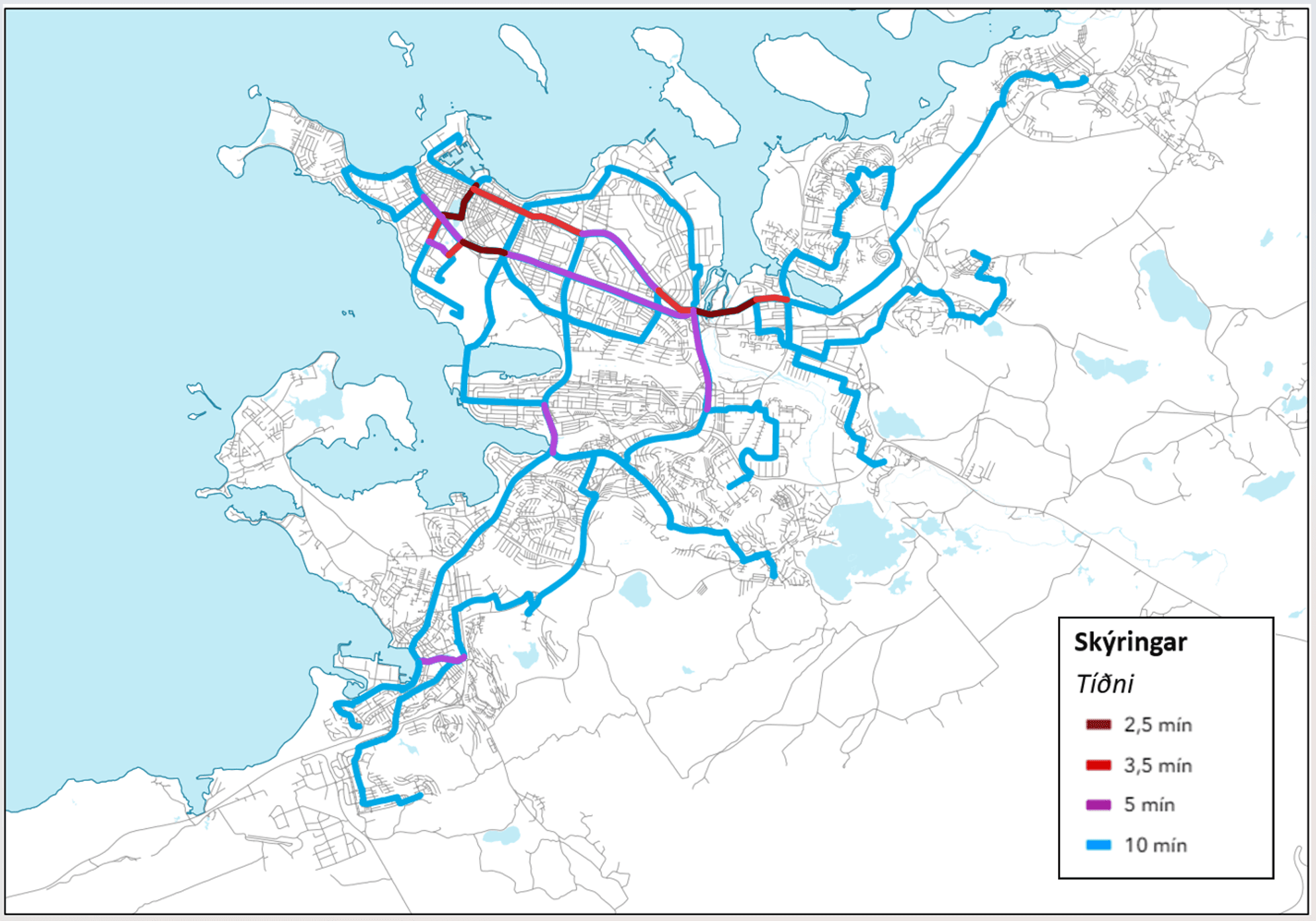 | Stofnleiðir | 7 - 10 mín fresti | 15 - 20 mín fresti |